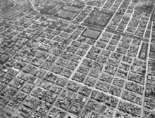 Vue aérienne de Johannesbourg en 1911. En haut de la photo, le Joubert Parc et la gare de Park Station.