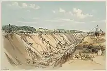 Sonning Cutting déblais de Sonning »). Des ouvriers réparent les contreforts du déblais. JC Bourne, publié en 1846.