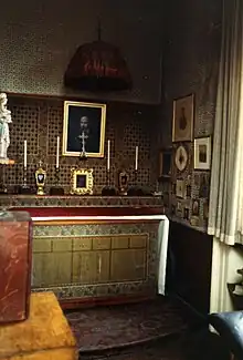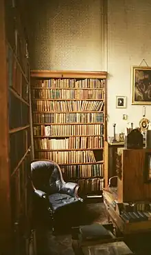 En 1842, il se retire à Littlemore[79],[84], où il vit dans des conditions monacales avec un petit groupe de proches[85], auxquels il demande de rédiger des biographies des saints anglais[86], tandis qu'il achève son Essai sur le développement de la doctrine chrétienne, où il cherche à se réconcilier avec la doctrine et la hiérarchie de l'Église catholique romaine. Il étudie les écrits d'Alphonse de Liguori, dont il retire la certitude que l'Église catholique n'est pas, comme il le croyait, une foi superstitieuse[87]. En , il publie anonymement dans l'Oxford Conservative Journal une rétractation officielle des critiques qu'il a adressées à l'Église romaine, et en septembre, il prononce son dernier sermon anglican à Littlemore, puis il démissionne de Saint-Mary le [86].