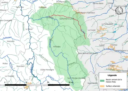 | Sources : SANDRE:« Fiche cours d'eau (K1528100) », Géoportail | |