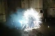 Certains agrès dont la manipulation le permet, comme le staff ou les bolas, se sont aussi parfois vu agrémenter d'artifices pyrotechniques. Cette pratique induit une attention toute particulière en ce qui concerne la sécurité du jongleur et de son environnement proche. Ces artifices sont généralement soit de petits articles de pyrotechnie achetés dans le commerce, soit des artifices artisanaux (ex. bolas spéciales contenant de la paille de fer ou du charbon a narguilé).