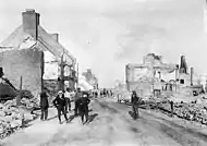 Un grand incendie ravage la ville de Trois-Rivières le 22 juin 1908, et les dégâts sont considérables[40],[41]. Les mesures d'urgence sont déclarées, la quasi-totalité des bâtiments patrimoniaux de Trois-Rivières est détruite, 215 foyers et commerces sont rasés par les flammes et l'essentiel du centre-ville de Trois-Rivières, qui comptait alors autour de 12 000 habitants, prend les allures de zone sinistrée[41]. Le maire de Trois-Rivières, François-Siméon Tourigny, reste optimiste et pense déjà à la reconstruction à venir de la capitale de la Mauricie, déclarant à la suite de la tragédie : « Là où de vieux édifices ont été détruits s'élèveront de nouvelles constructions édifiées d'après les plans les plus modernes. Le désastre a été un dur coup pour nous, mais ce sera peut-être finalement un bien pour la ville. Nous essaierons maintenant de faire de Trois-Rivières une cité moderne »[41]. Le Conseil municipal entame les planifications de la modernisation « des Trois-Rivières », refait le tracé de ses rues, bétonnise ses trottoirs, élargit ses avenues principales et change ses lois en ce qui a trait aux règlements sur les matériaux à utiliser lors de la construction d'édifices et les normes à respecter quant à l'attribution de contrats[41]. La consternation de cette « année noire » pour les trifluviens laisse graduellement place à une frénésie de la reconstruction pour la décennie à venir[41]. L'industrialisation rapide de Trois-Rivières, qui est appelé à devenir la capitale mondiale du papier journal, se met en branle[42],[43].