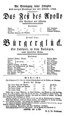 - Bürgerglück. Lustspiel in dei Aufzügen. Wallishauser, Wien 1792 (Digitalisat)