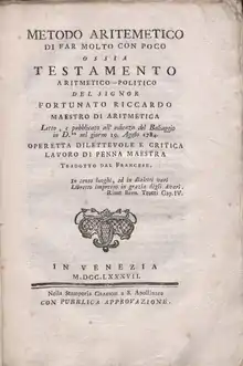 - (it) Metodo aritemetico di far molto con poco ossia testamento aritmetico-politico, Venise, Antonio Graziosi, (lire en ligne)