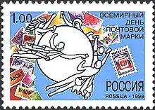 Timbre russe de 1998 célébrant la journée mondiale du timbre postal