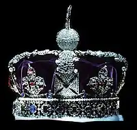 - La couronne d'apparat (State Crown) : portée lors de la procession à la sortie de l'abbaye, portée ensuite pour des occasions très diverses.