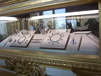 Pour donner une idée de l'étendue de ce trésor, l'inventaire de 1691 fait état de 5 885 diamants, 1 588 pierres de couleur, dont le plus beau saphir connu du monde – le « Grand Saphir » – et 488 perles, dont la plus belle perle ronde connue en Europe – la « Reine des Perles » –, de 112,25 grains métriques. Le trésor dispersé à La Révolution est reconstitué au siècle suivant, mais à nouveau dispersé en 1887. A cette date, une grande partie des pierreries avaient été montées en éléments de joaillerie sous le règne de Napoléon III, mais de nombreux diamants sont restés célèbres sans monture spéciale.