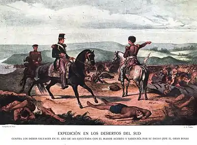 Les troubles consécutifs à l’Anarchie de l'an XX avaient laissée dégarnie la frontière sud de la province, entraînant une recrudescence des malones, c’est-à-dire des razzias commises par les Indiens autochtones. Martín Rodríguez organisa alors trois campagnes militaires dans le désert, en usant vis-à-vis des Indiens pampas d’un curieux mélange de pourparlers de paix et d’opérations de guerre. En 1823, il fonda le fort Indépendance, devenu depuis lors l’actuelle ville de Tandil. Dans la quasi-totalité de ces opérations militaires, il fut accompagné par Rosas, qui participa également à une expédition lors de laquelle l’arpenteur Felipe Senillosa s’attachait à délimiter les territoires respectifs des peuples autochtones du sud de la province et à en établir les plans cadastraux. Nominalement, c’était le colonel Juan Lavalle qui se trouvait à la tête de cette campagne.