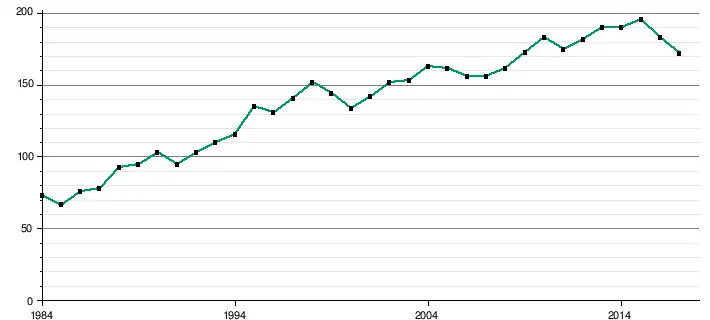 | Température moyenne (°C) | 1,2 | 2,3 | 5 | 6,7 | 10,9 | 15,2 | 18,3 | 17,9 | 14,3 | 10,1 | 4,9 | 1,9 | 9 |