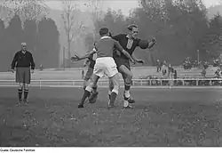 Remarque : au moins dans les années 1980, un joueur pouvait être sanctionné d'une expulsion. Il n'était alors pas remplacé au bout de deux minutes et son équipe terminait la rencontre avec seulement 5 joueurs de champs[5]
