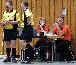 Les juges-arbitres échangent régulièrement de côté afin de ne pas avoir tout le temps la même équipe en attaque.