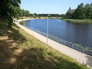 Deux ponts ont été construits sur la rivière : un pont ferroviaire (sur la ligne Riga-Lugazi (lv)) et un pont routier sur la route A2. Près de la rivière se trouvent le voisinage de Jugla.