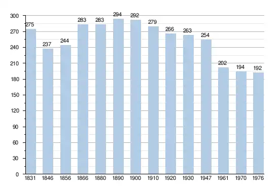 - Sources : INS, Rem. : 1831 jusqu'en 1970 = recensements, 1976 = nombre d'habitants au 31 décembre.