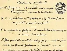 - Camille Dreyfus, art. « Graphologie » in La grande encyclopédie : inventaire raisonné des sciences, des lettres et des arts par une Société de savants et de gens de lettres, t. XIX, S.A. de la Grande Encyclopédie, Paris, 1902, p. 223.