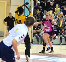 Tir à l'aile lors du match Issy Paris Hand / Nantes LAH du 06 novembre 2015.