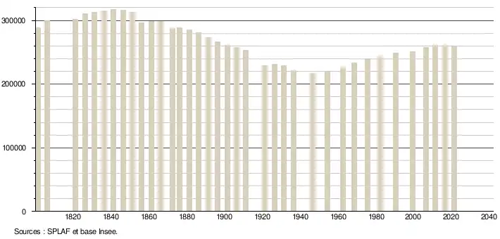 En 2021, le département comptait 258 555 habitants[Note 2], en diminution de 0,78 % par rapport à 2015 (France hors Mayotte : +1,84 %).