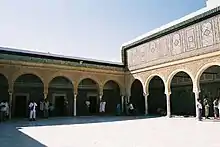 Elle doit à sa façade décorative d'être considérée comme l'un des plus beaux spécimens de l'architecture islamique[50]. La façade, haute d'environ 7 mètres, est ornée de trois inscriptions[51] dont la première est une citation des versets 70-71 de la sourate 33 du Coran[52] :