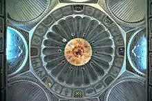 Dans sa forme définitive, la mosquée s'étend sur 125 mètres de long et 73 mètres de large, couvrant une superficie totale de 9 000 m2[35]. Elle appartient au type architectural de la mosquée de cour. La salle de prière supporte deux coupoles côtelées dont l'une est disposée au-dessus du mihrab aménagé au milieu du mur de la qibla, partie la plus ancienne, tandis que l'autre coupole a été construite lors de l'extension de la mosquée, au-dessus d'une galerie à arcs outrepassés axée sur la grande cour intérieure. La salle de prière se compose de 17 nefs dans le sens de la longueur, sept travées et un transept. La nef centrale mène au mihrab, niche de forme semi-cylindrique, soigneusement ornée de céramiques et de marbre sculpté, dont l'état actuel date du début de la seconde moitié du IXe siècle[36].