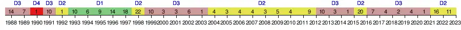 La frise ci-dessous résume les classements successifs du club en championnat.