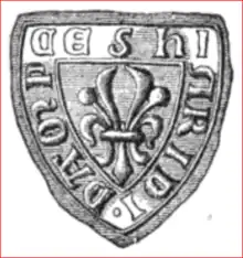 Les armoiries représentent une fleur de lys rouge en argent. Sur le casque aux lambrequins rouge et argent, trois plumes d'autruche (rouge, argent et rouge)[1].
