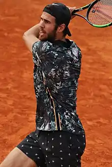 Il est éliminé au deuxième tour de Rome la semaine suivante battu par le Français Grégoire Barrère (6-4, 4-6, 6-7)[51]. Il dispute fin mai le Grand Chelem parisien, dernier rendez-vous notable sur terre battue. Confronté au Français Constant Lestienne qui joue pour la première fois le tournoi, il est mené deux sets à zéro mais parvient à revenir (3-6, 1-6, 6-2, 6-1, 6-3)[52]. Il sort le vétéran Moldave qualifié Radu Albot (6-3, 6-4, 6-2) puis l'Australien Thanasi Kokkinakis, invité par les organisateurs (6-4, 6-1, 3-6, 7-6). Il gagne son huitième de finale contre l'Italien Lorenzo Sonego, 48e mondial mais tombeur en cinq sets de son compatriote Andrey Rublev, septième mondial au tour précédent. Après avoir concédé le premier set, le Russe monte en puissance et finit par l'emporter (1-6, 6-4, 7-6, 6-1)[53] alors que son adversaire a eu une balle de set dans la troisième manche. Il part en quarts de finale pour la seconde fois de sa carrière à Roland-Garros et rencontre le champion Novak Djokovic, qu'il n'a battu qu'une seule fois en neuf confrontations. Il s'incline après avoir remporté le premier set (6-4, 6-7, 2-6, 4-6)[54], ne marquant aucun point dans le tie-break du deuxième set. Le Serbe gagnera son 23e Grand Chelem quelques jours plus tard.