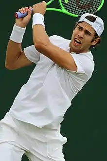 Sur la gazon de Wimbledon, il atteint un 2e huitième de finale consécutif en Grand Chelem après Paris. Il bat pour cela David Ferrer (6-1, 7-63, 3-6, 7-5), puis Márcos Baghdatís (6-3, 6-4, 3-6, 64-7, 7-5) et Frances Tiafoe (4-6, 4-6, 7-63, 6-2, 6-1)[19]. Il perd sèchement (4-6, 2-6, 2-6) contre Novak Djokovic en 1 h 45, le futur lauréat du tournoi[20].
