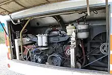 Le moteur et la boîte de vitesses sont placés dans la partie arrière de car dans le porte-à-faux. Seul l'essieu arrière est propulsé et est constitué d'un bloc. L'essieu avant est indépendant. Tous les essieux sont montés sur suspension pneumatique.