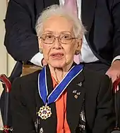 - Katherine Johnson reçoit la médaille présidentielle de la Liberté en 2015, des mains du président des États-Unis Barack Obama[23]. L'année suivante, elle est intégrée dans la série les 100 femmes d'exception de la BBC.