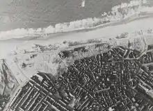 |   Plage et centre-bourg. (Juillet 2010, en hélicoptère, photo Richardkiwi) | |||||