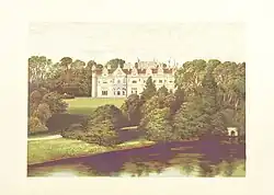 La maison est construite en pierre de taille de grès rouge et jaune avec des pierres d'angle rustiques. Conçu selon un plan à peu près en forme de L, le style est Jacobean Revival. Construit autour d'une cour, il se compose de trois étages avec des caves. D'un côté de la cour se trouve une aile de service de construction plus simple.