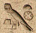| Morceau de peau de crocodile avec ses écailles[17] ou Morceau de charbon brûlant[18] | Signe bilitère km [19] | |||