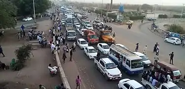 Le , l'armée tue de 130 à 150 manifestants et en blesse des dizaines d'autres lors de l'attaque d'un sit-in occupé depuis début avril pour protester contre le régime. D'après le chercheur Gérard Prunier, face au Conseil militaire de transition, « le rassemblement fonctionnait aussi comme un meeting politique permanent où chacun faisait preuve de solidarité. Tout le monde s'occupait des enfants ; les femmes, qui avaient trouvé leurs voix[Quoi ?], étaient omniprésentes ; et les provinciaux découvraient la capitale. Les slogans donnaient le « la » d'un mouvement résolument pacifique : « Silmiya » (« Non-violence »), « Hurriya » (« Liberté »), « Thawra » (« Révolution »), « Dhidd al-haramiya » (« À bas les voleurs »), « Madaniya » (« Le pouvoir aux civils »). Pendant tout le ramadan, dans ce pays musulman gouverné par les islamistes depuis trente ans, les manifestants respectaient jeûne ou pas, selon leur libre choix. Les commerçants, y compris chrétiens, approvisionnaient la foule en biens de première nécessité[4]. »