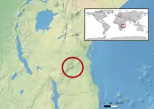 Aire de répartition de l'espèce Kinyongia magomberae selon l'UICN (consulté le ).