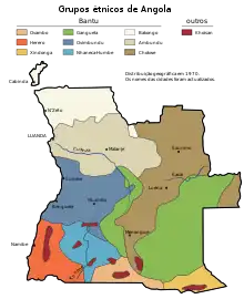 Carte ethnique de l'Angola en 1970 (territoire des Bakongo signalé en blanc)