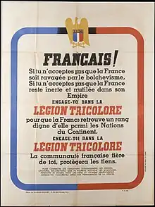 La Légion tricolore, qui n'exista quasiment que sur le papier du au , est une tentative du gouvernement de Vichy, sous l'égide de Laval et de son secrétaire d'État Jacques Benoist-Méchin, de récupérer politiquement et militairement la Légion des volontaires français contre le bolchevisme (LVF), créée le . Cette dernière avait en effet un statut d'association de droit privé sous le contrôle exclusif de partis collaborationnistes français et sa partie combattante était intégrée au sein de l'armée allemande en tant que Infanterie Regiment 638.