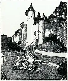 - Xavier de Langlais, Le Roman du roi Arthur: Merlin et la jeunesse d'Arthur. Les compagnons de la Table ronde Vol. 1 de Le Roman du roi Arthur, éditions d'art les Heures Claires, 1965, p. 86.