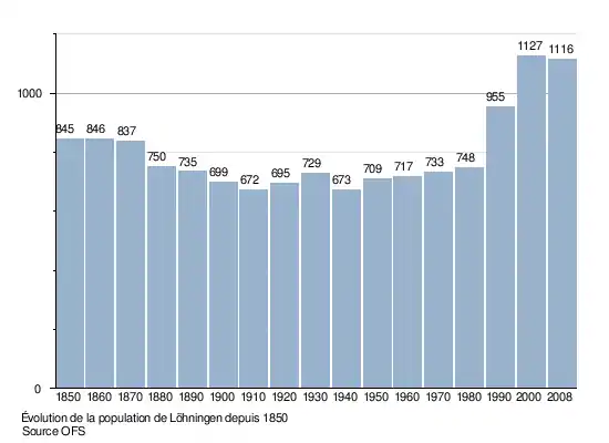 Le graphique suivant résume l'évolution de la population de Löhningen entre 1850 et 2008[3] :