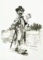 Deux hobos marchant sur la voie ferrée après avoir été jetés hors d'un train (v.1886) | |