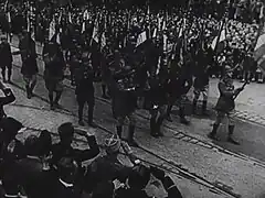 - Le défilé des drapeaux jusqu'au port de Marseille et leur départ pour l'Afrique du nord, le .
