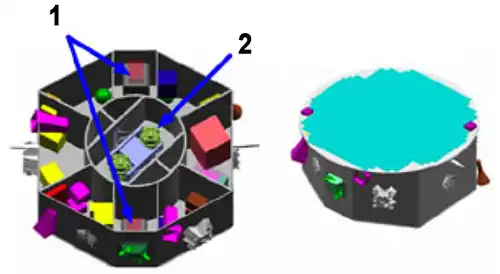 - douze clamps de fixation maintenaient chaque masse pour éviter l'influence des vibrations lors de la mise en orbite.
