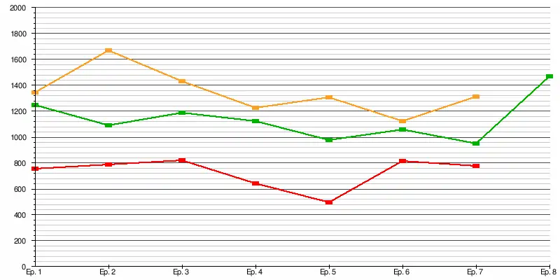 ![]() Légende : Saison 1 / Saison 2 / Saison 3 |