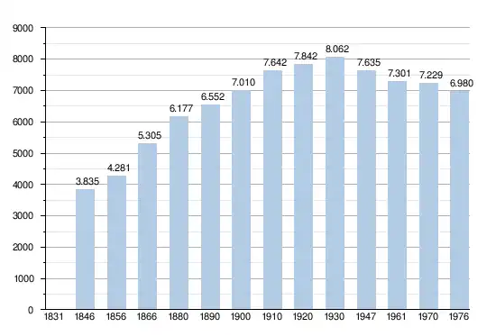 - Sources : INS, Rem. : 1831 jusqu'en 1970 = recensements, 1976 = nombre d'habitants au 31 décembre.[2]