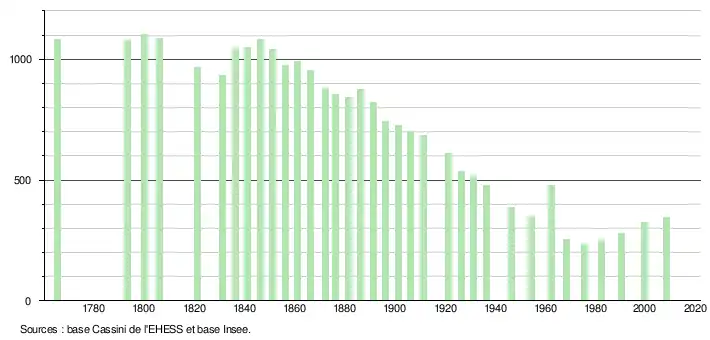 - Christiane Vidal, « Chronologie et rythmes du dépeuplement dans le département des Alpes de Haute-Provence depuis le début du XIXe siècle. », Provence historique, tome 21, no 85, 1971, p. 288.