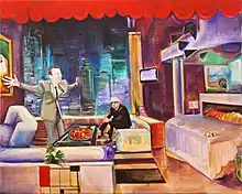 - Le journaliste Jean-Pierre Pernaut animant une conférence de rédaction, huile sur toile