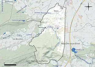 Les communes limitrophes sont Saint-Gervais-du-Perron, Le Bouillon, Neauphe-sous-Essai et Sées.