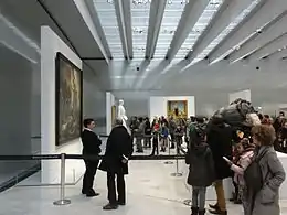 La pièce majeure de cette exposition est en 2013 La Liberté guidant le peuple d'Eugène Delacroix, elle est située tout au fond de la salle. Elle est remplacée par Œdipe et le Sphinx de Jean-Auguste-Dominique Ingres en 2014. Les œuvres sont réparties du IVe siècle av. J.-C. jusqu'à 1850 de manière chronologique et transversale, elles proviennent de chacun des huit départements du musée du Louvre, à l'exception des dessins du département des Arts graphiques, qui sont montrés dans les expositions temporaires.