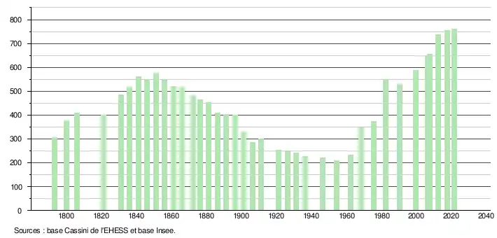 - 1789 : la population est de 220 habitants (756 hab. en 2020).