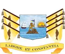 Le blason des écoles de La Martinière a été conçu par le fondateur Claude Martin[25]. Il est soutenu par sept drapeaux, chacun portant la représentation d'un poisson, l'emblème d'Oudh[26]. L'illustration de l'écusson semble incarner la vie de Claude Martin. Le navire rappelle son voyage en Inde où il a établi sa fortune, le lion avec le fanion représente sa carrière d'officier dans la Compagnie des Indes orientales et avec le Nawab d'Oudh, le soleil couchant derrière le bâtiment à la droite du bouclier semble signaler[25] le coucher de soleil de vie et la grande place que la construction de Constantia a joué dans ses derniers jours. Le blason et la devise qui l'accompagne Labore et Constantia sont maintenant partagés par toutes les écoles fondées par Claude Martin.