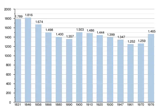 - Sources : INS, Rem. : 1831 jusqu'en 1970 = recensements, 1976 = nombre d'habitants au 31 décembre.