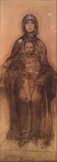 Vroubel, esquisse pour La Vierge à l'enfant, Mine de plomb et gouache sur papier contrecollé sur carton 36,5 × 26,5 cm, 1884. Galerie Tretiakov